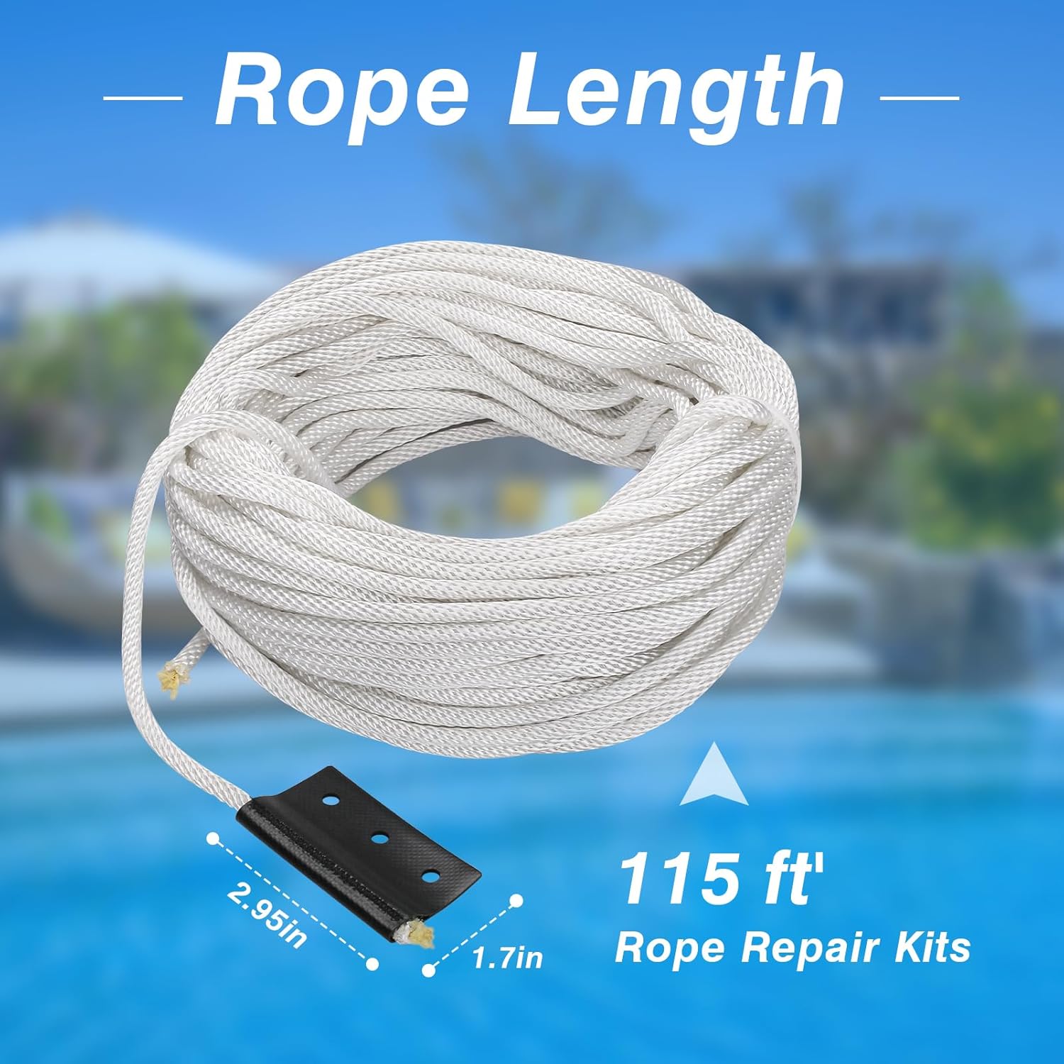 115 ft Automatic Pool Cover Rope KitCompatible with Most Coverstar, Automatic Pool Covers inc and Pool Covering Systems of Pool Cover Specialists Since 2017 That Use 3-Hole Rope TabsAutomatic Pool Cover Rope Kit Lengths are Respectively: 115ft 135ft 150ft